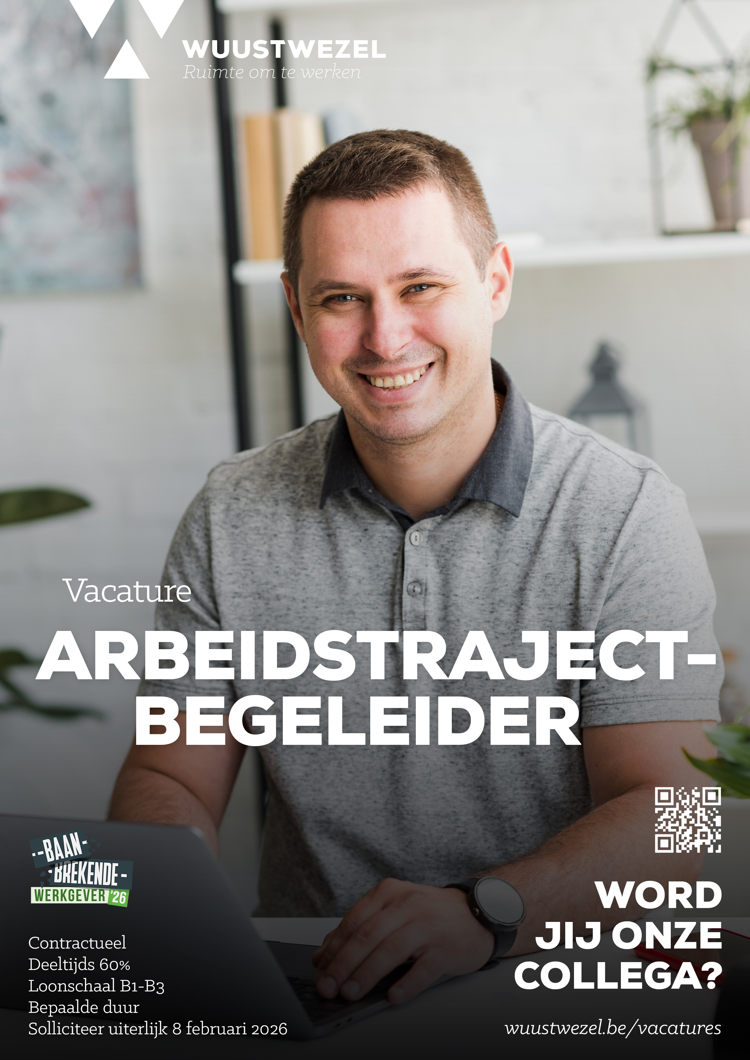 Wil je meewerken aan een warme en zorgzame gemeente? Bezorg ons danuiterlijk 8/2/2026 jouw kandidatuur met de gevraagde documenten via personeel@wuustwezel.be. Alle praktische informatie over de sollicitatieprocedure vind je in de informatiebundel.