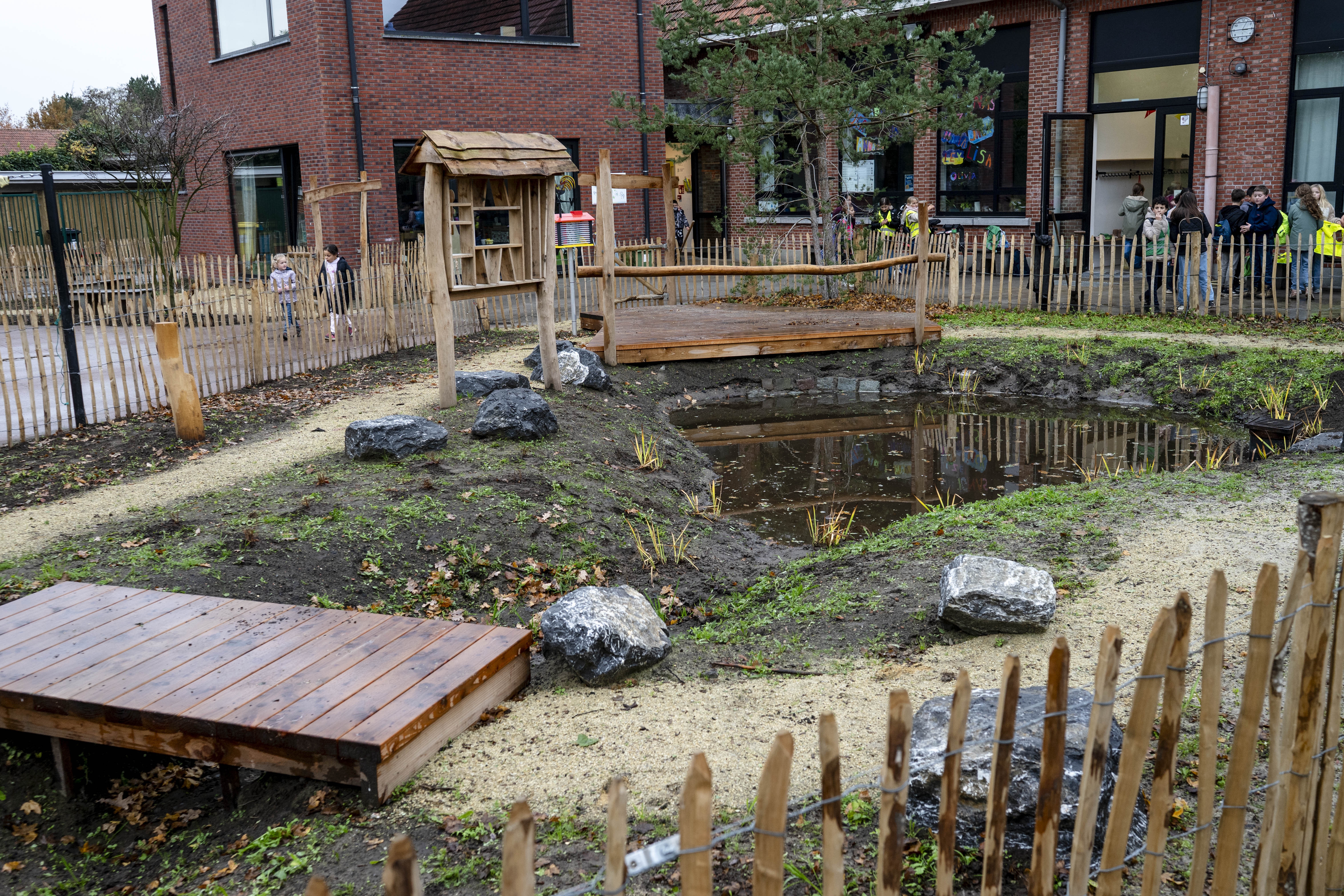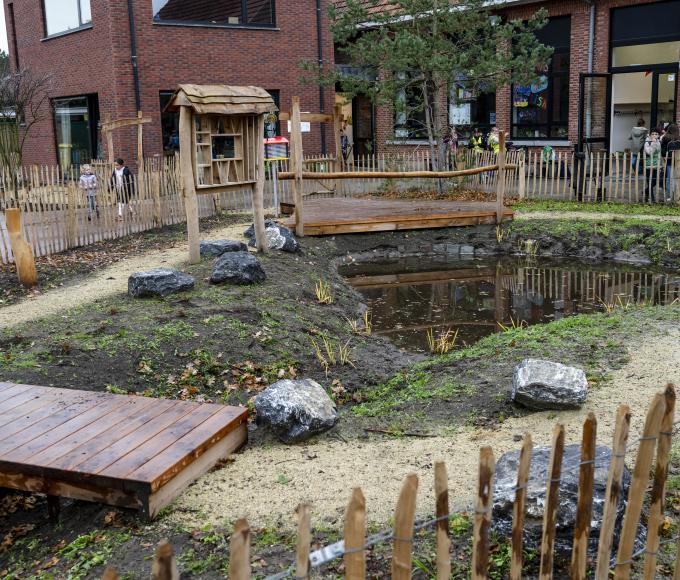 Sinds begin dit schooljaar siert een grote groene speelzone de speelplaats van vrije basisschool ’t Kantoor in Braken. De school verving het grootste deel van de speelplaats en gaf die een groene invulling: een wadi, nieuwe bomen en snoepstruiken, een bloemenweide, een faunatoren, een buitenklas, een wilgenburcht een zandkeuken en meer.