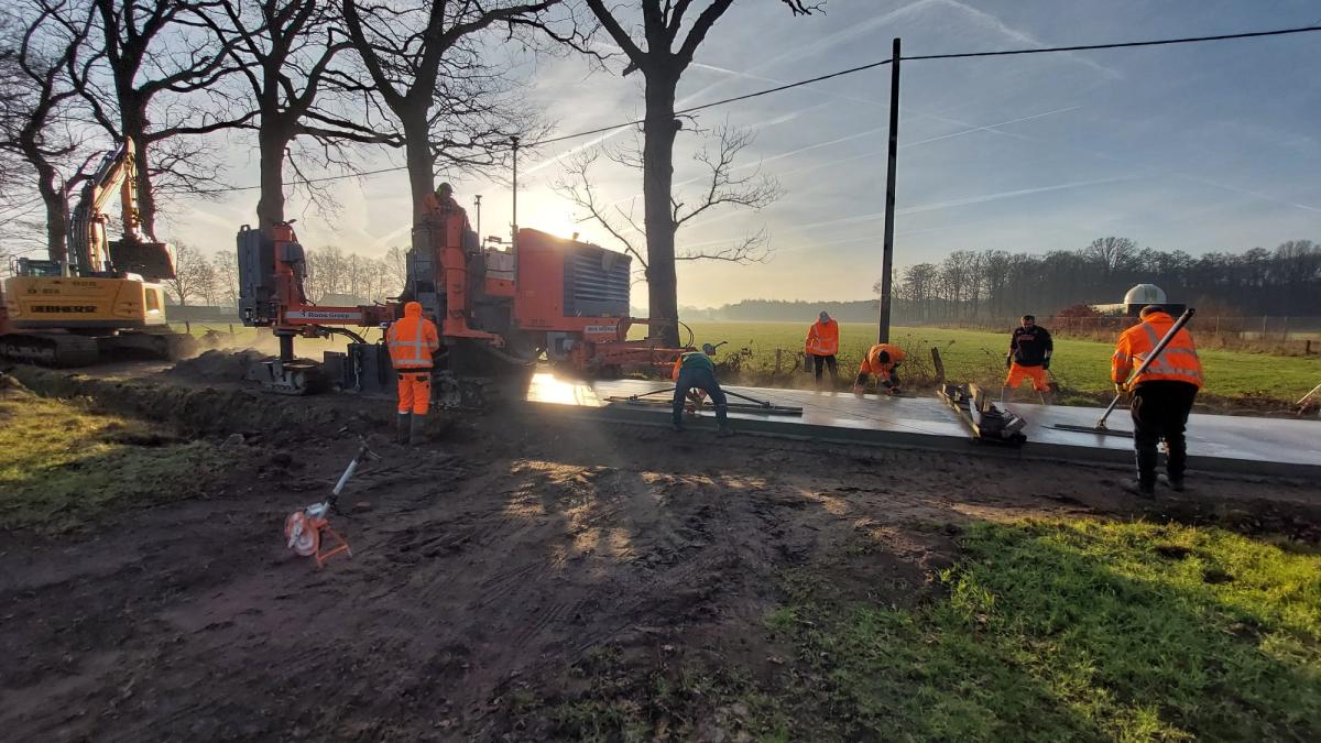 In de Korte Gasthuisdreef werd deze week het nieuwe wegdek aangelegd. Net als eerder in de Schaapsdijk koos het lokaal bestuur voor snelverhardend beton. Dat hardt sneller uit en is dus ook sneller weer toegankelijk dan klassiek beton, waardoor de hinder voor buurtbewoners beperkt blijft.