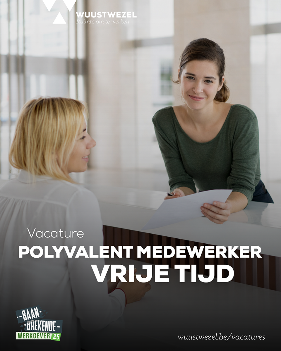 Het lokaal bestuur Wuustwezel is op zoek naar een polyvalent medewerker vrije tijd. Het gaat om een deeltijdse contractuele functie (70%) van onbepaalde duur, met salarisschaal C1–C3.