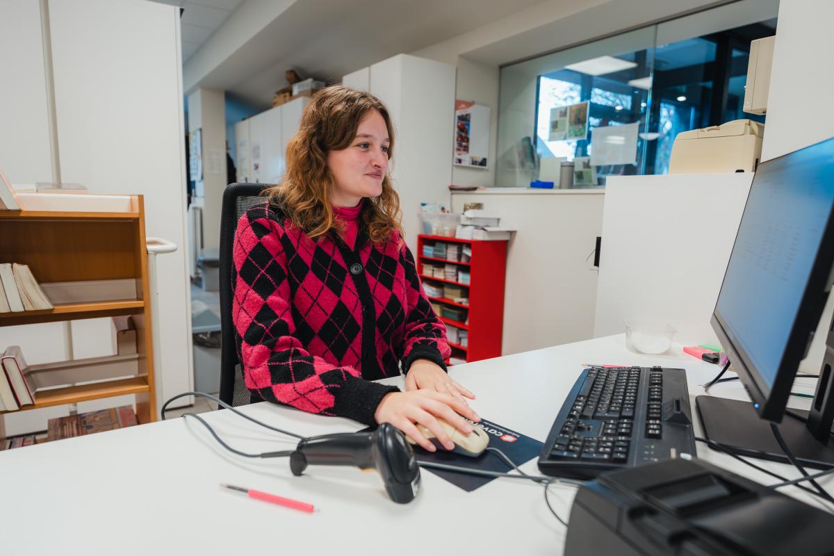 Studente Pixie aan het werk in de Wuustwezelse bibliotheek tijdens YOUCA Action Day 2025